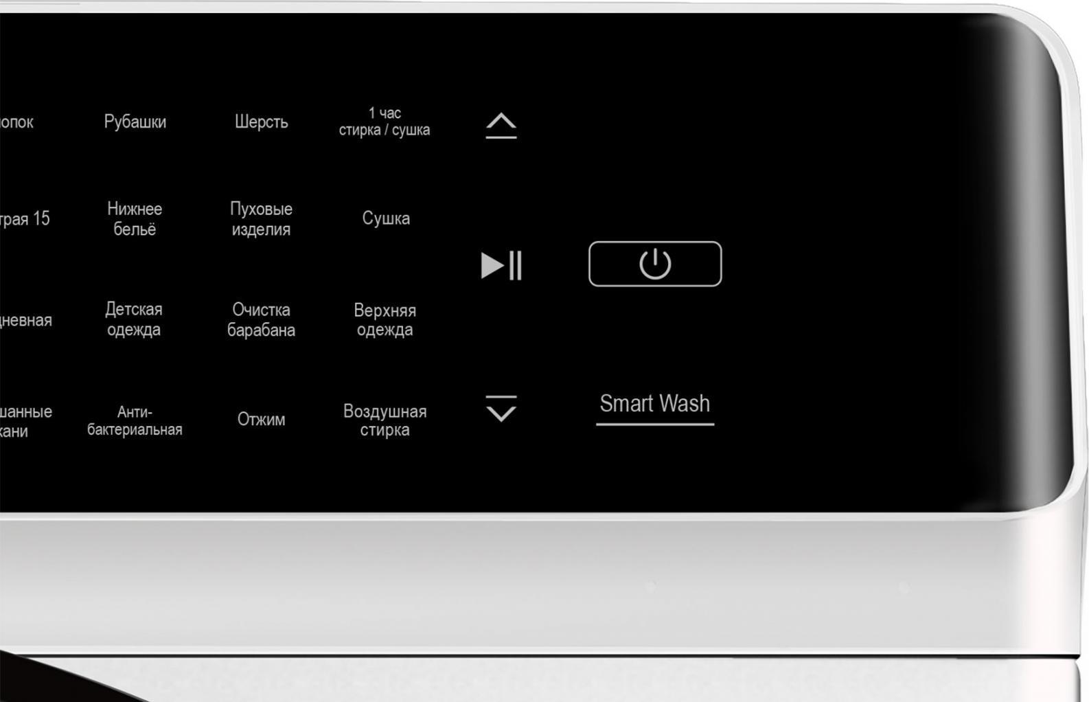 - Программа «Антибактериальная стирка» предназначена для удаления бактерий, стерилизации и обеззараживания тканей. «Smart wash» - интеллектуальная программа стирки, с которой отстирываются даже самые стойкие загрязнения, определяя вес белья и сочетая различное время и температуру.