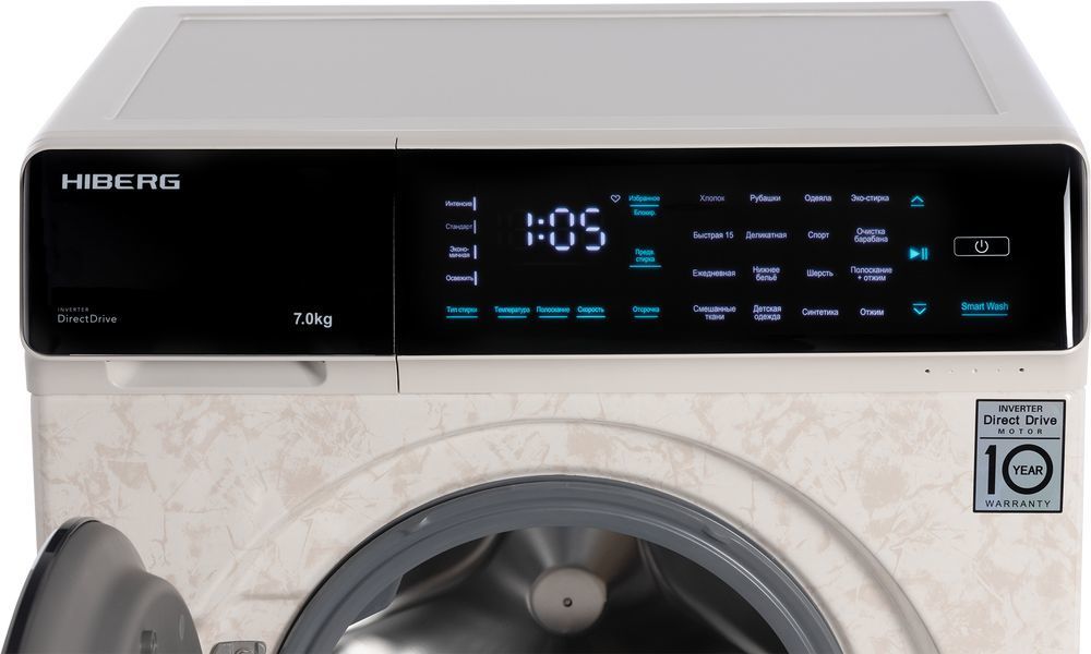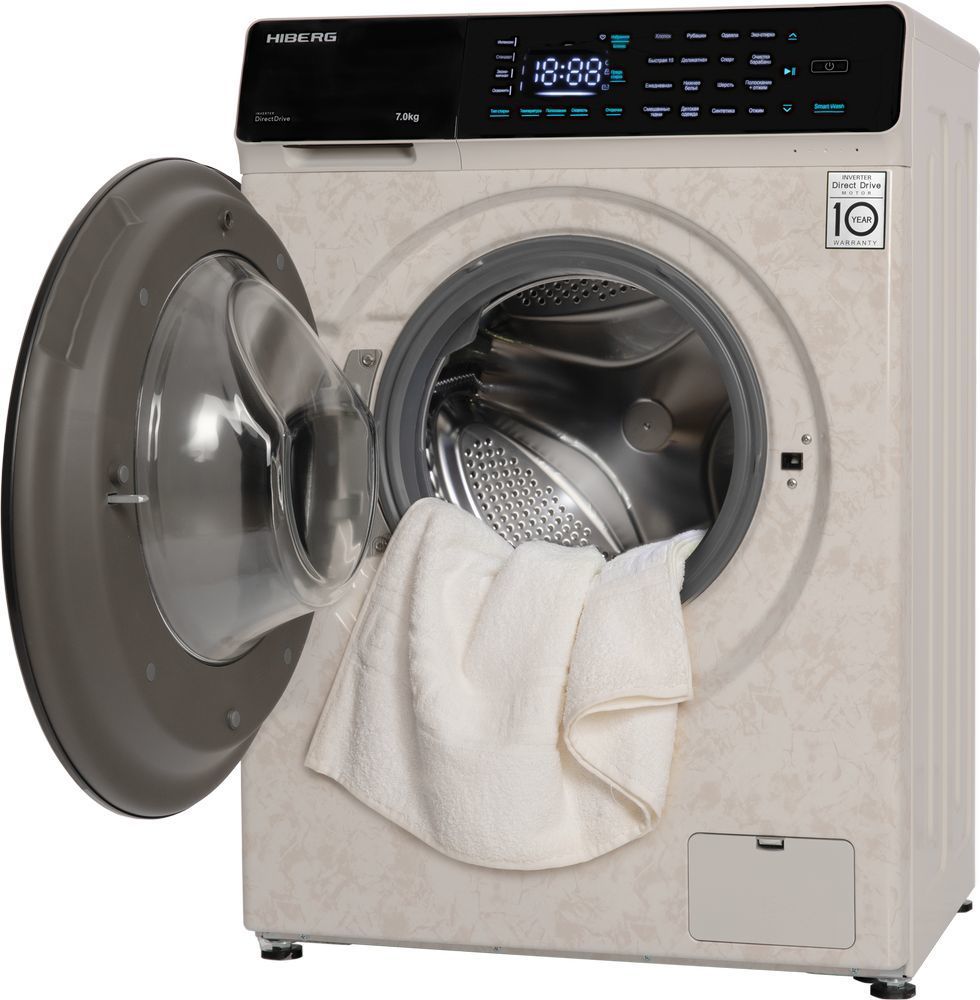 Стиральная машина Hiberg i-DDQ9 - 712 Ym. Цвет бежевый мрамор.