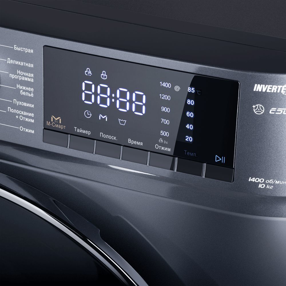 - М-Смарт - поможет определить вес белья и подобрать оптимальное время и температуру стирки.
