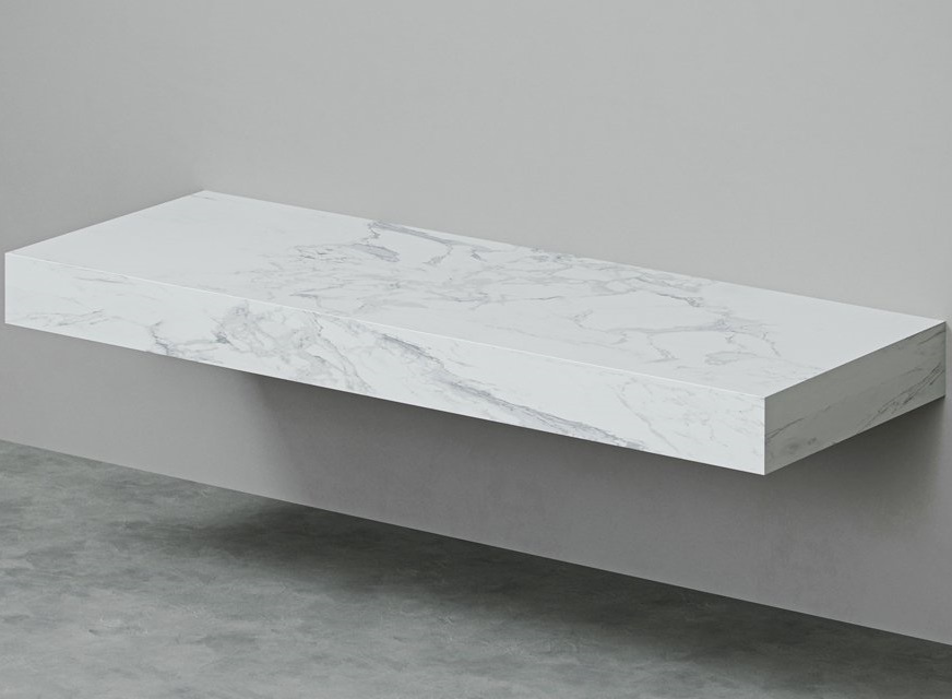 Столешница под раковину Velvex Unit 140 см, материал фанера ФСФ класс эмиссии Е1, HPL поверхность, влагостойкий шов, цвет белый мрамор.