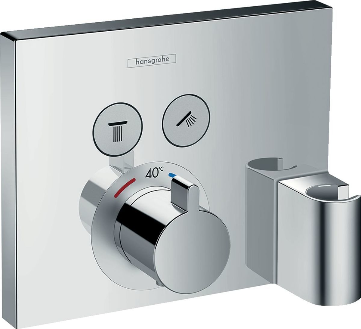 Термостат Hansgrohe Shower Select 15765000 для душа, с держателем для лейки, на 2 потребителей, материал - латунь, цвет - хром. Скрытая часть 01800180 приобретается отдельно.