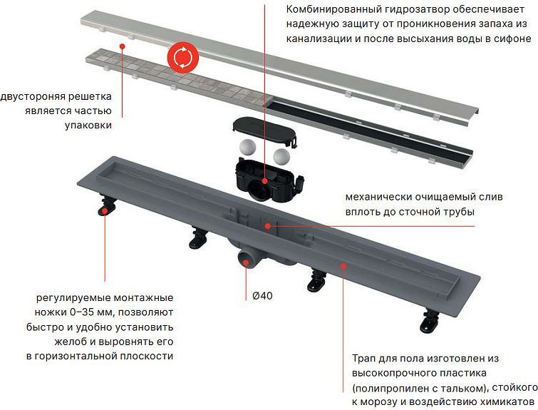 Трап Alcadrain 85 см APZ19-850 с порогами для двусторонней решетки.