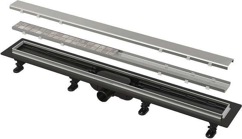 Трап Alcadrain 85 см APZ20-850 с порогами из нержавеющей стали для перфорированной решетки или решетки под кладку плитки.