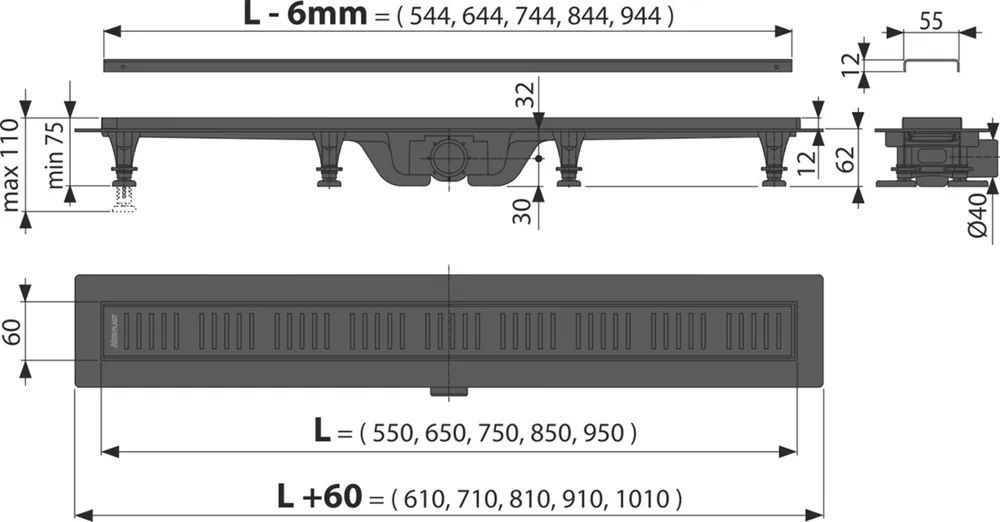 Характеристики трап линейный Alcadrain (APZ10BLACK-950M)