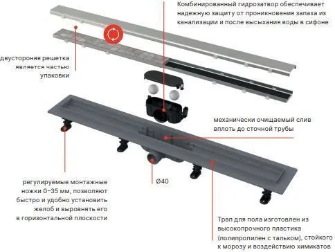 Описание трап линейный Alcadrain APZ20-950