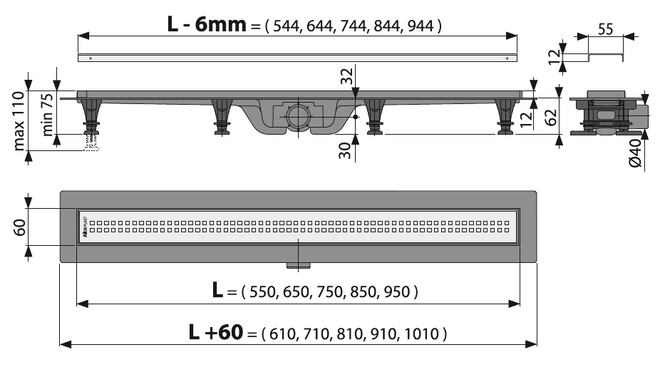 Характеристики трап линейный Alcadrain (APZ9-550M)