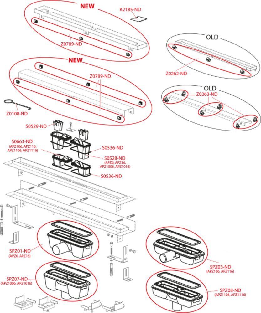 - Для цельных решеток – нержавеющая сталь, закаленное стекло, сочетание нержавеющей стали и закаленного стекла, а также для решетки под кладку плитки и призматической решетки