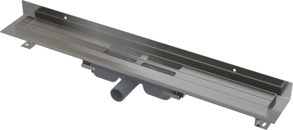 Водоотводящий желоб AlcaPlast 95 см APZ116-950 с порогами для цельной решетки и фиксированным воротником к стене.