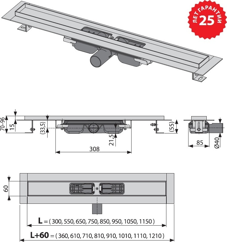 Характеристики трап линейный AlcaPlast (APZ101-300)