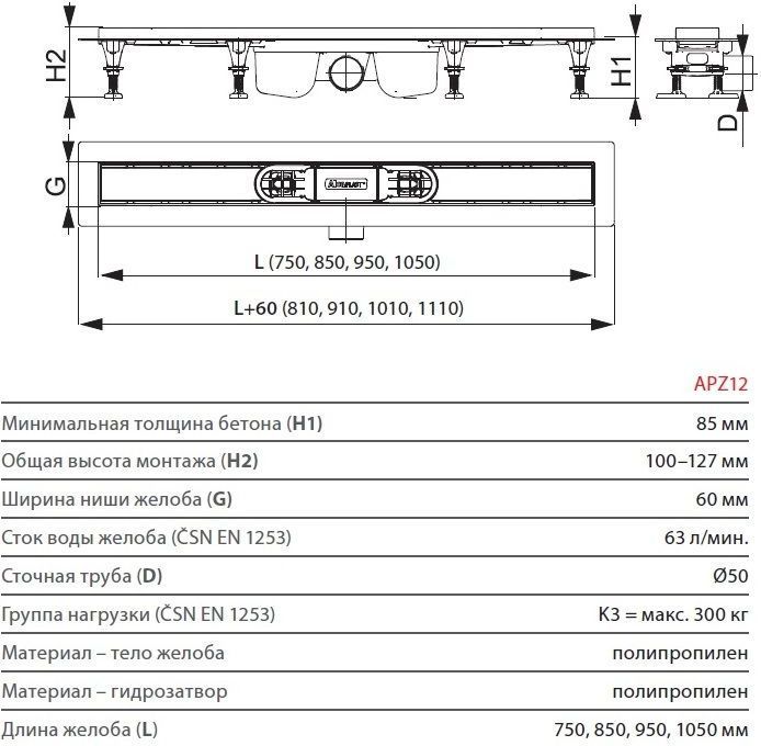 Характеристики трап линейный AlcaPlast (APZ12-850)