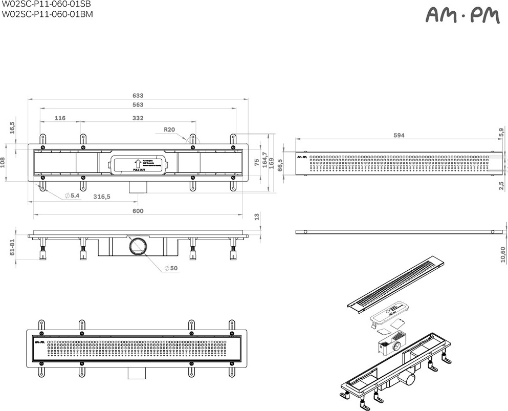 Описание трап линейный AM.PM W02SC-P11-060-01BM