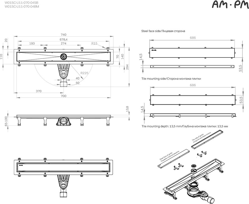 Описание трап линейный AM.PM W01SC-U11-070-04BM