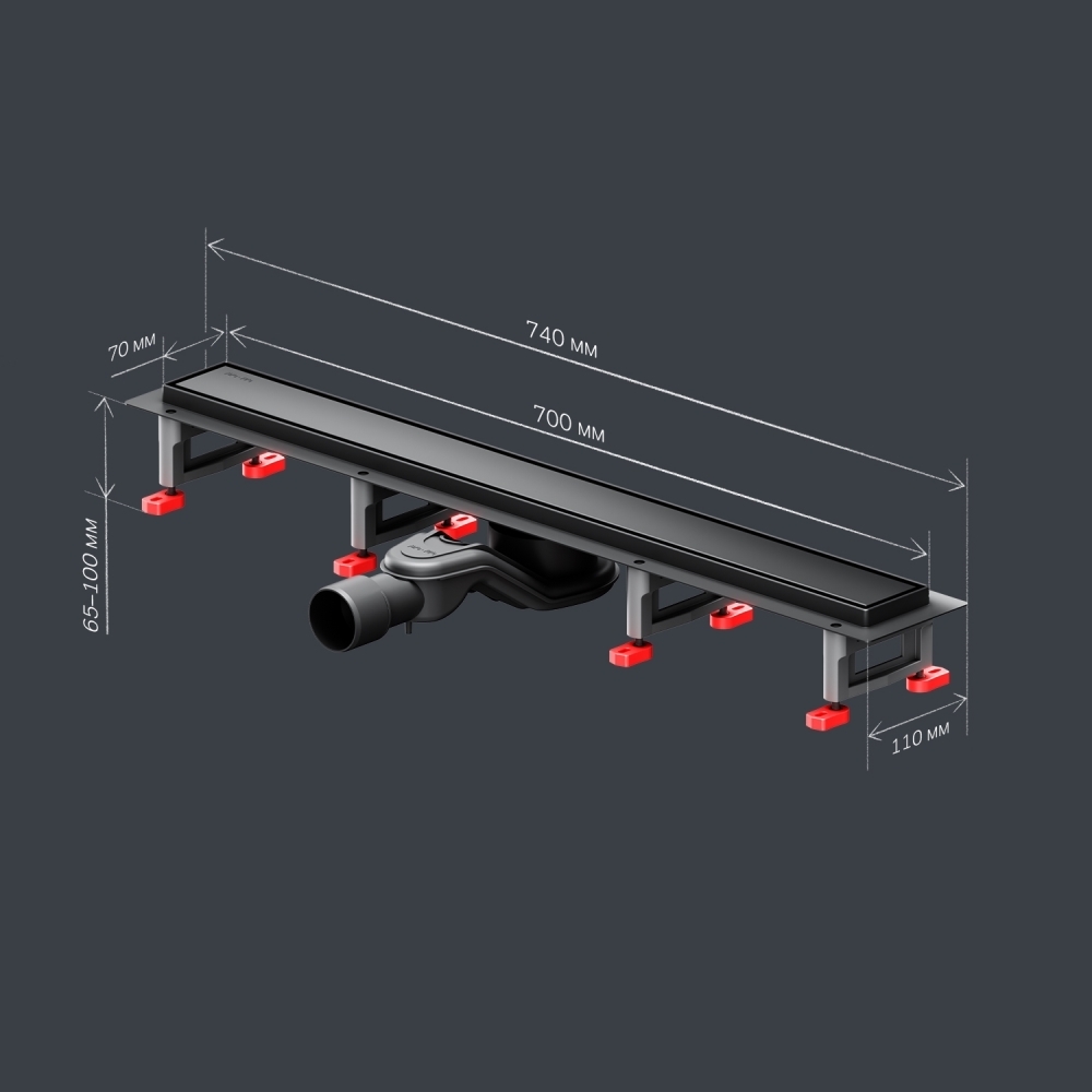 Душевой трап (лоток) 70 AM.PM MasterFlow W01SC-U11-070-04BM комбинированный затвор с черной матовой решеткой под плитку