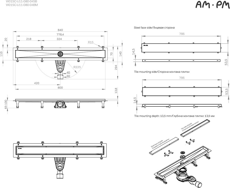 Характеристики трап линейный AM.PM (W01SC-U11-080-04SB)