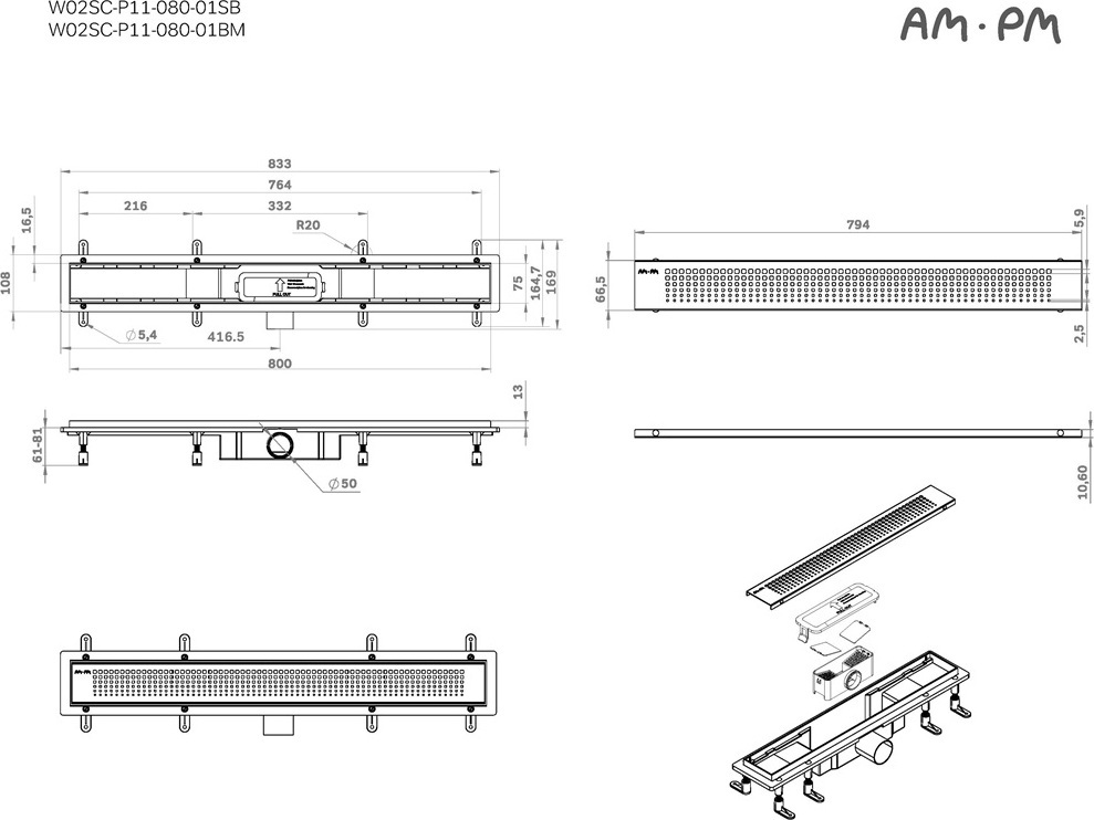 Описание трап линейный AM.PM W02SC-P11-080-01BM