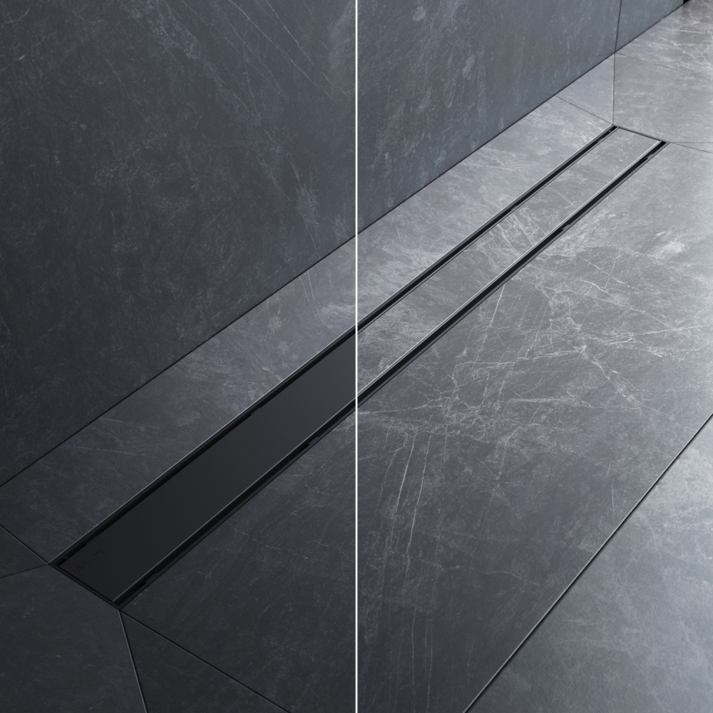 Душевой трап (лоток) 90 AM.PM PrimeFlow W02SC-U11-090-04BM комбинированный затвор с черной матовой решеткой под плитку