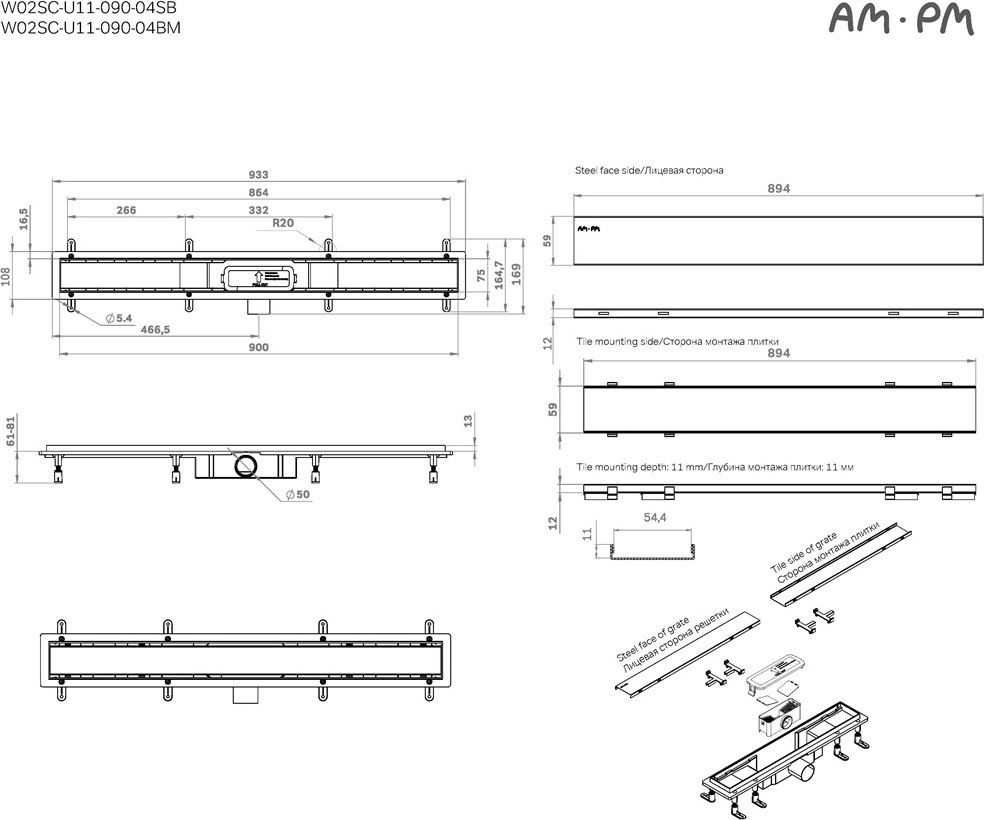 Описание трап линейный AM.PM W02SC-U11-090-04BM