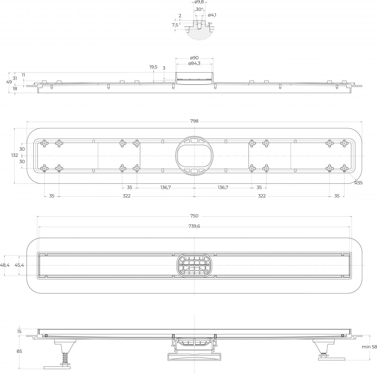 Описание трап линейный BelBagno BB-LD-LUCE-80-NERO