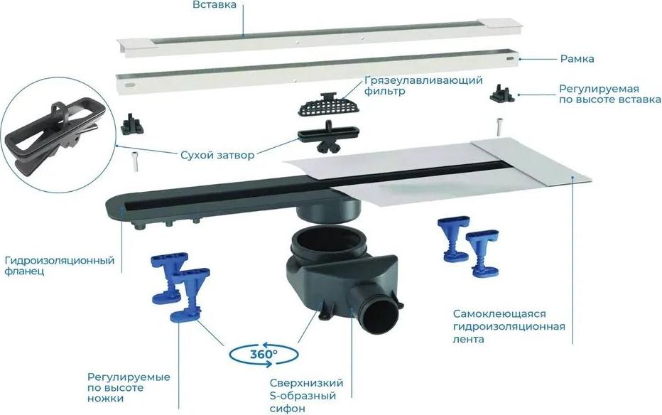 - Комбинированный затвор (сухой и гидро) препятствует проникновению неприятных запахов из канализации