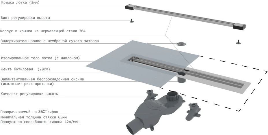 Характеристики трап щелевой Boheme (981-60-CR)