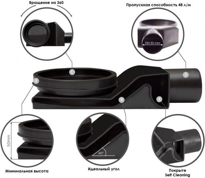 - Материал: нержавеющая сталь AISI 304 SS – дизайн-вставка, рамка; ABS – корпус; PP – переходник, сифон, грязеулавливающая сеточка, комбинированный затвор.