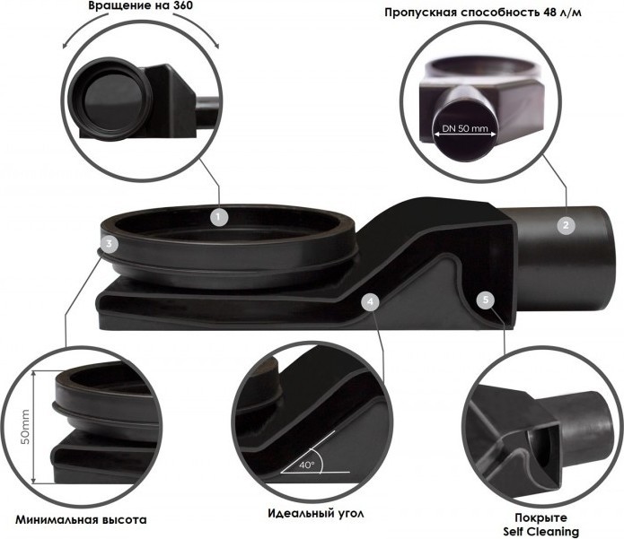 - Материал: нержавеющая сталь AISI 304 SS – дизайн-вставка, рамка; ABS – корпус; PP – переходник, сифон, грязеулавливающая сеточка, комбинированный затвор.