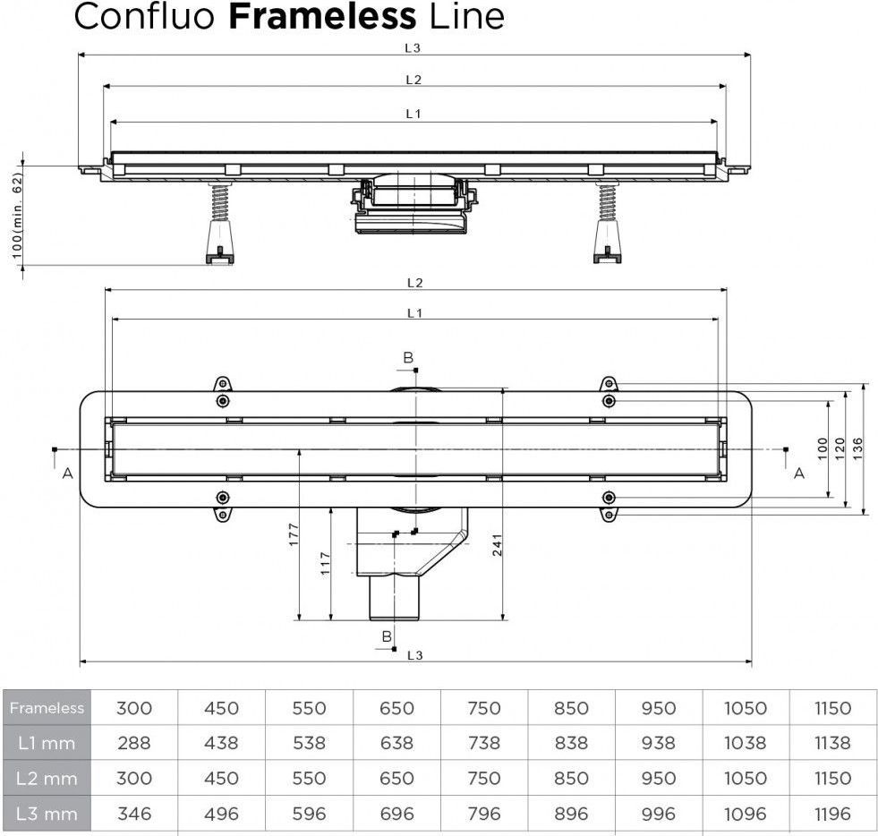 Трап Pestan (BETTOSERB) Confluo Frameless Line 55 см 13701230, хром матовый (под плитку)