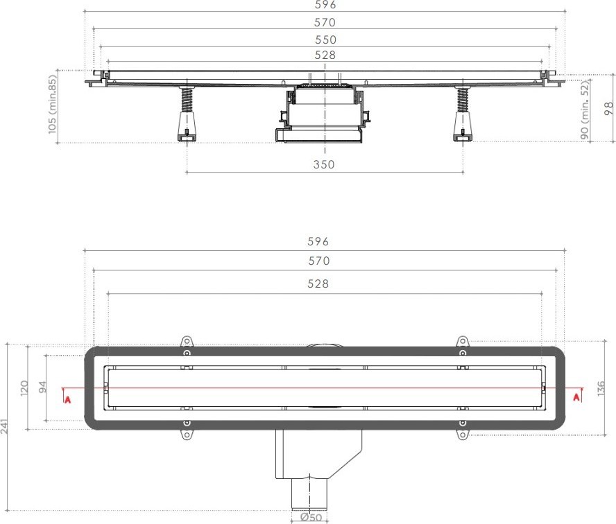 Трап Pestan (BETTOSERB) Confluo Premium Line 55 см 13100003, нержавеющая сталь (под плитку)