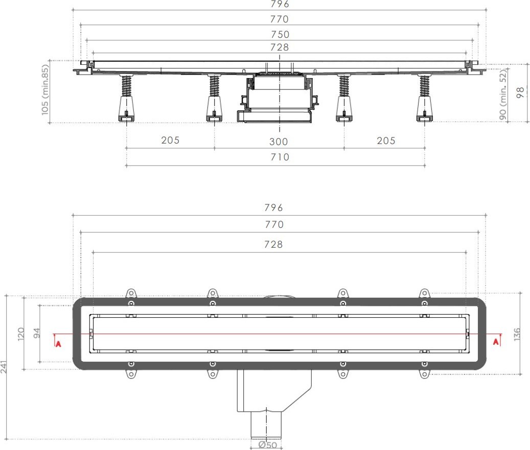 - Нагрузка на решетку в соответствии с EN 1253 выдерживает до 300 кг давления класс K3