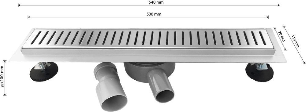 Душевой сливной трап из нержавеющей стали, линейный, горизонтальный с гидрозатвором, с регулируемыми ножками и бортиком под плитку с четырёх сторон – это специальный элемент сантехнических коммуникаций, предназначенный для отвода воды в систему канализации. Как правило, душевые трапы устанавливаются непосредственно в пол. Благодаря небольшим габаритам и высоте душевые трапы идеальны для установки в душевых зонах. Это важно для организации пространства, где нет возможности установить классическую ванну: в малогабаритных квартирах, студиях, совмещенных санузлах и т.п. Габаритные размеры: высота до 100 мм, ширина 70 мм, длина 500 мм, ширина бортика 20 мм, выход в канализацию 50 мм. В комплекте идут регулируемые ножки высотой до 10 мм от пола, вращающийся слив на 360°. Вес - 2,050 кг, объём - 0,00850 м3.