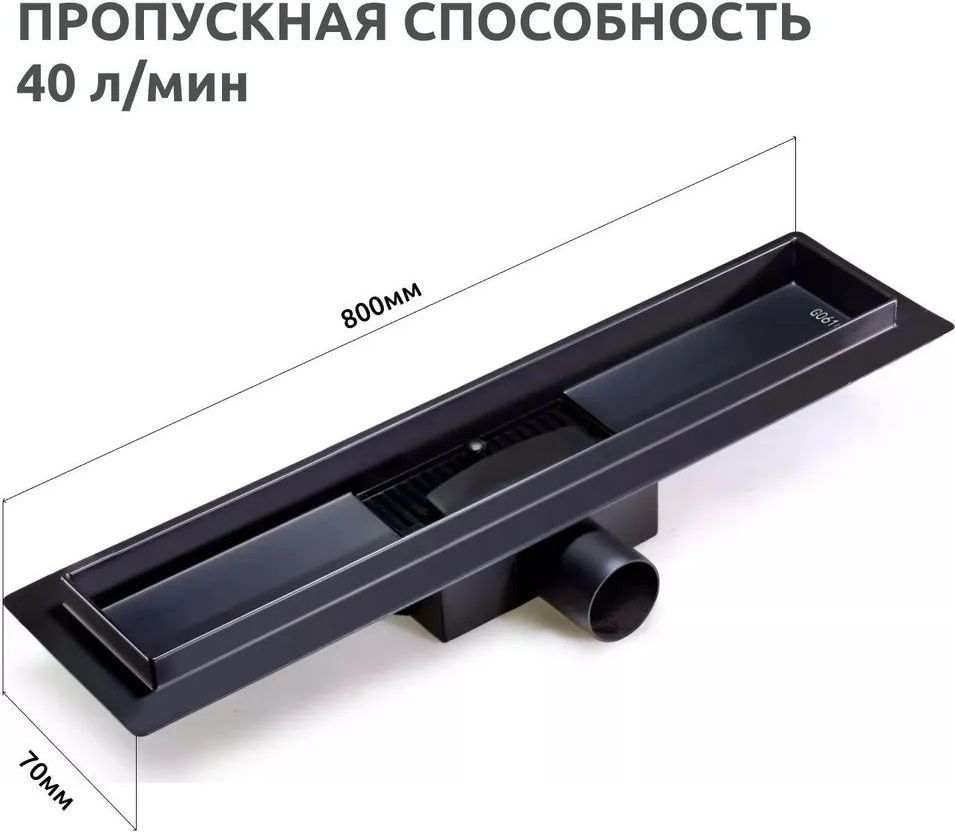 Трап TIM 80 см BAD468002BK, чёрный матовый (под плитку)