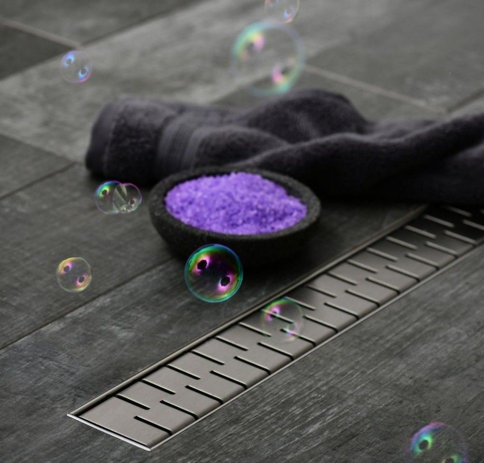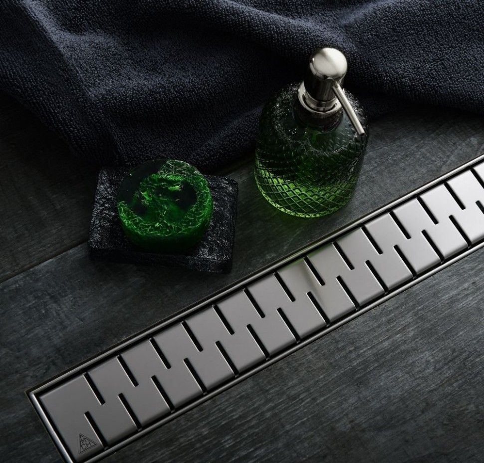 В комплект входит самоклеящаяся гидроизоляционная пленка, сетка для сбора волос, регулируемые ножки, комплект креплений, пластиковый ключ для снятия нержавеющей решетки и инструкция по установке.