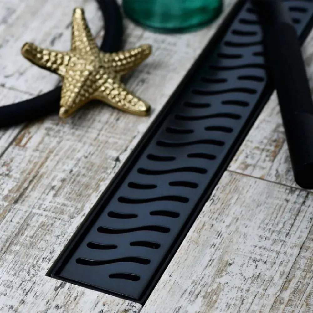 Трап Veconi Harmony Black 45 см с решеткой из нержавеющей стали, цвет черный матовый.