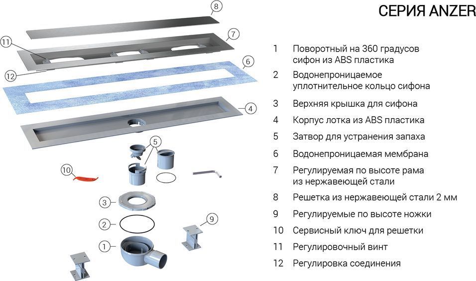 - дренажный канал из ABS-пластика