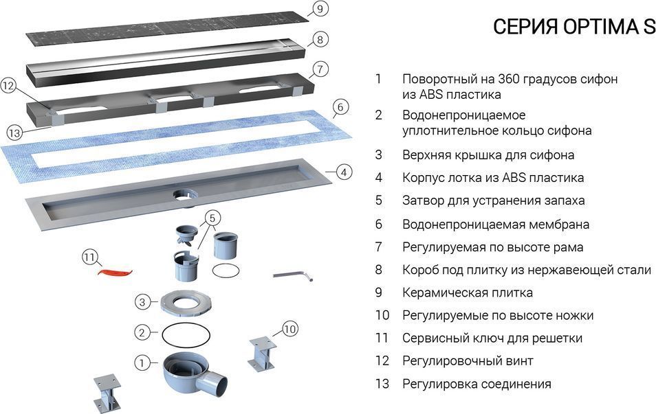 - дренажный канал из ABS-пластика