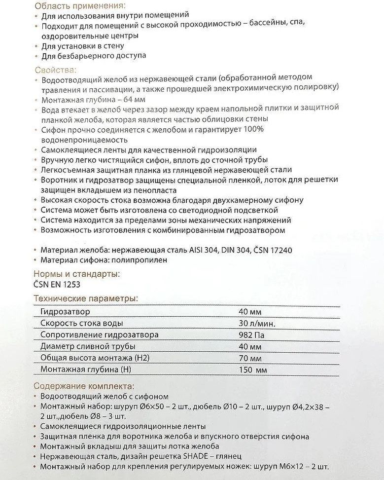 Водоотводящий желоб 500 мм с порогами для решетки, решетка в комплекте.