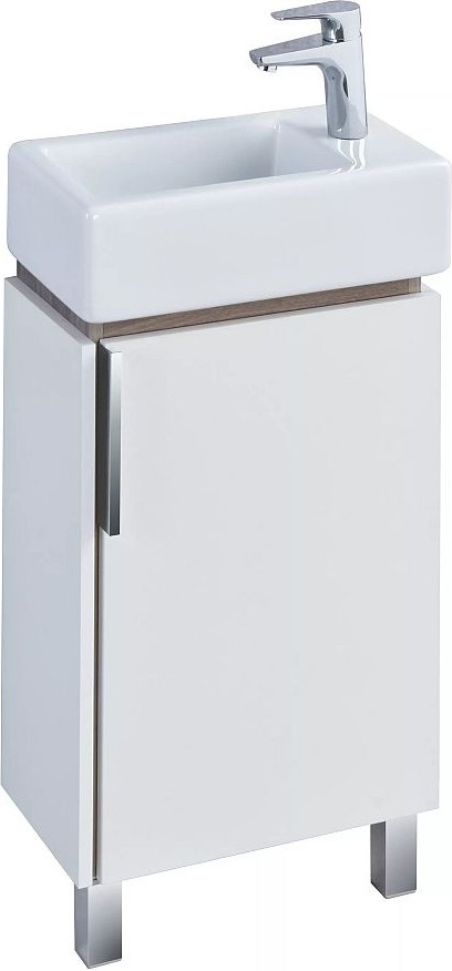 Тумба напольная Акватон Бэлла 44 см 1A221501BBAZ0 с раковиной Эрис 46 см, цвет белый глянцевый/дуб джарра.