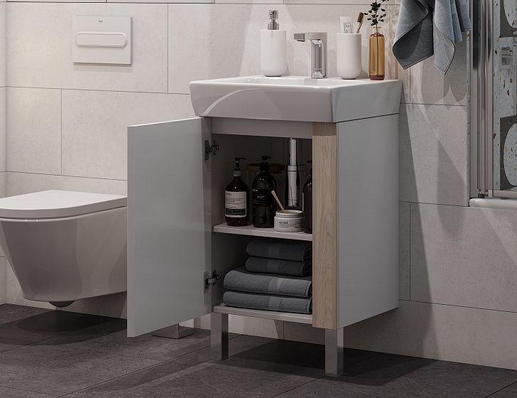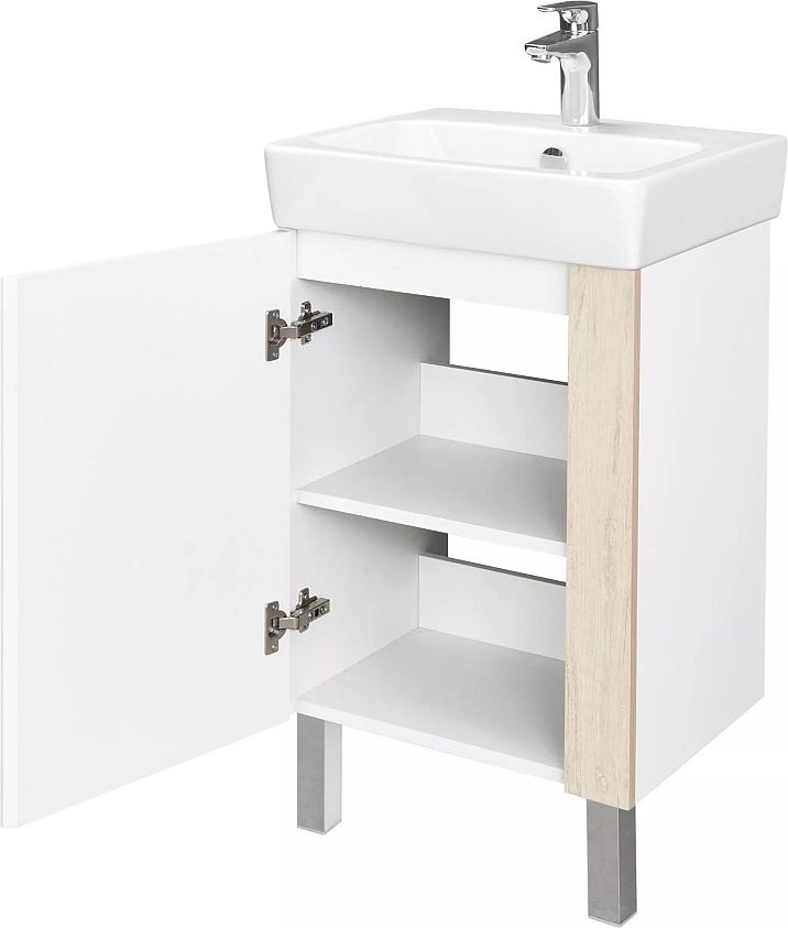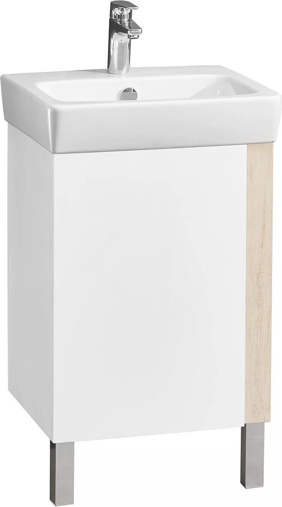 Тумба напольная Акватон Кантри 50 см с раковиной Нео 50, цвет - белый глянцевый/дуб верона.