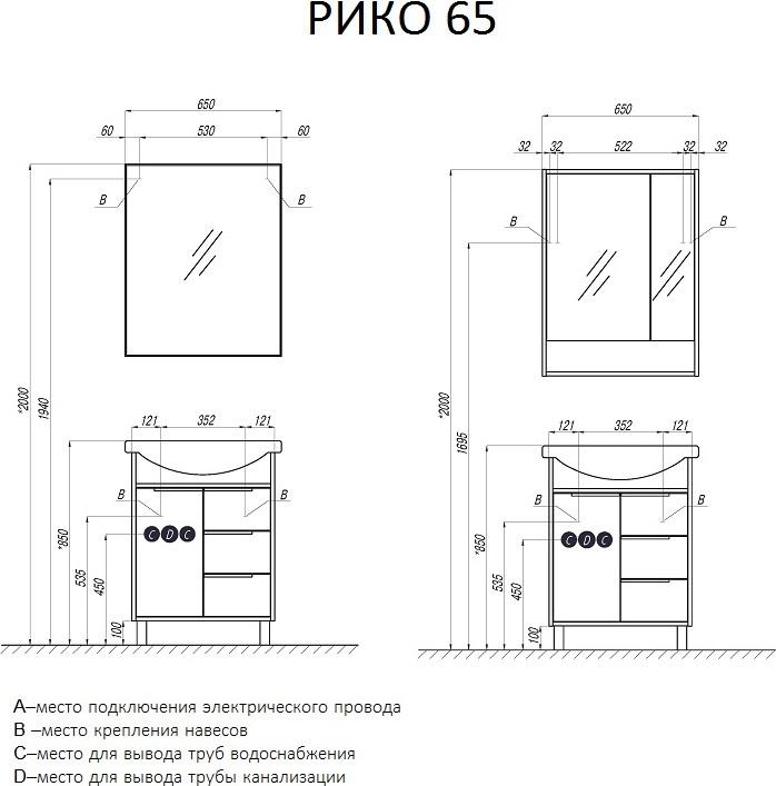 Характеристики тумба с раковиной Акватон (1A2133K1RIB90)