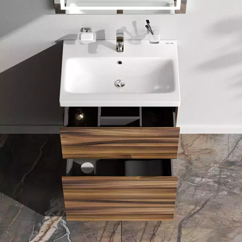 Тумба AM.PM Gem 60 см M90FSX0602HF в комплекте с раковиной M90WCC0602WG, цвет орех.