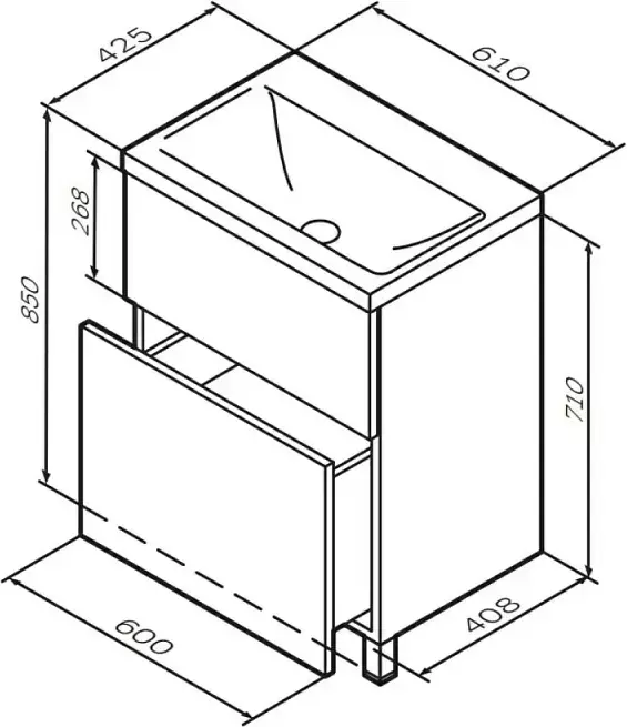 Характеристики тумба с раковиной AM.PM (M90FSX0602HF+M90WCC0602WG)