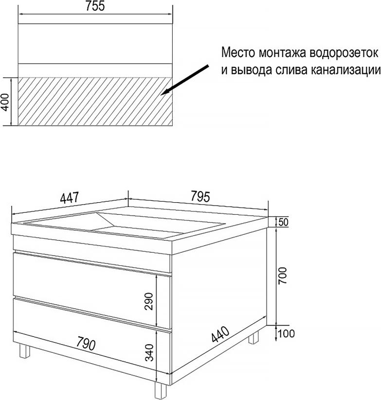 Тумба напольная с раковиной AN Эстелла 80 см, графит