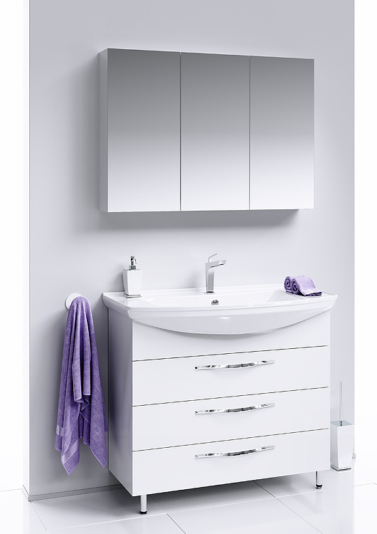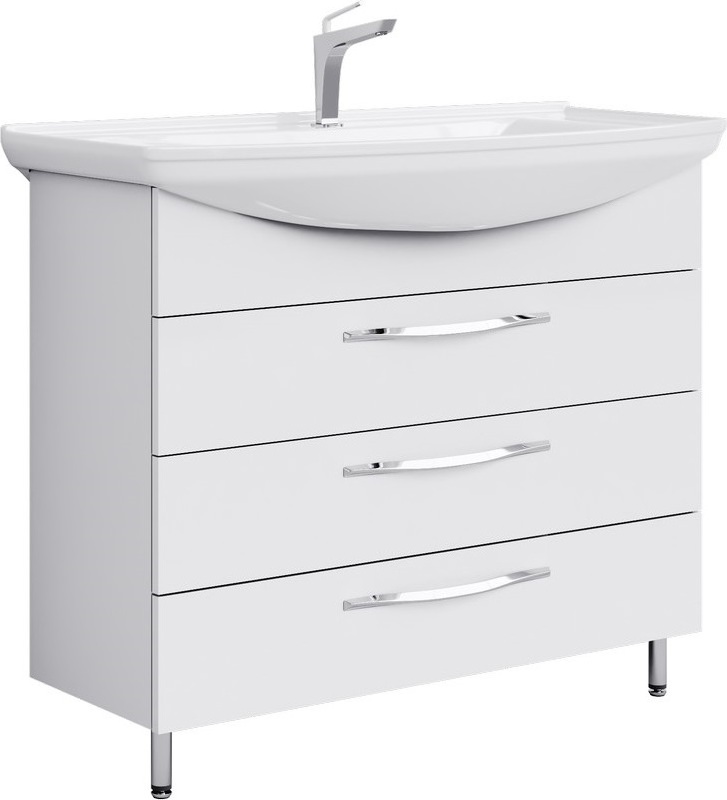 Тумба напольная Aqwella Аллегро 105 см с раковиной Стиль 105, 3 ящика, цвет белый.