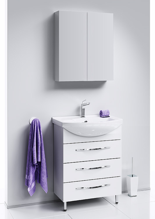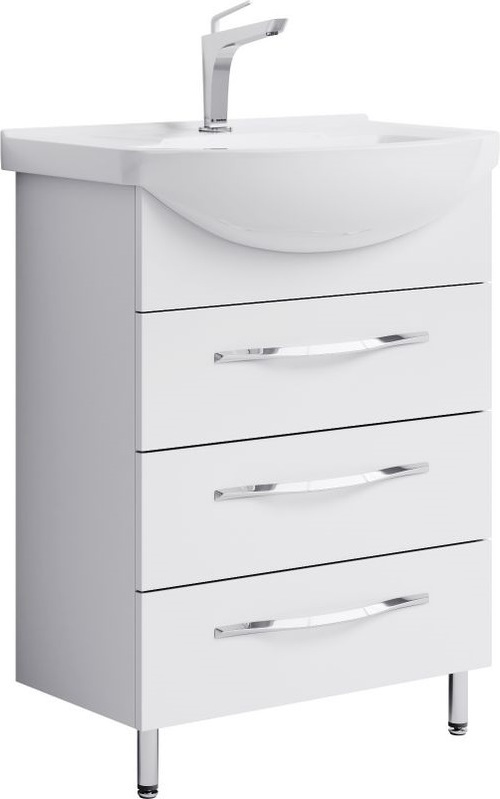 Тумба напольная Aqwella Аллегро 65 см с раковиной Элеганс 65, 3 ящика, цвет белый.