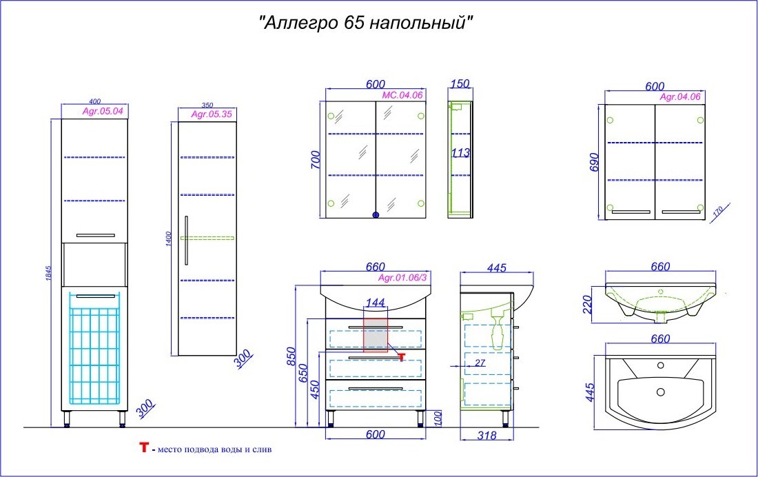 Характеристики тумба с раковиной Aqwella (Agr.01.06/3)