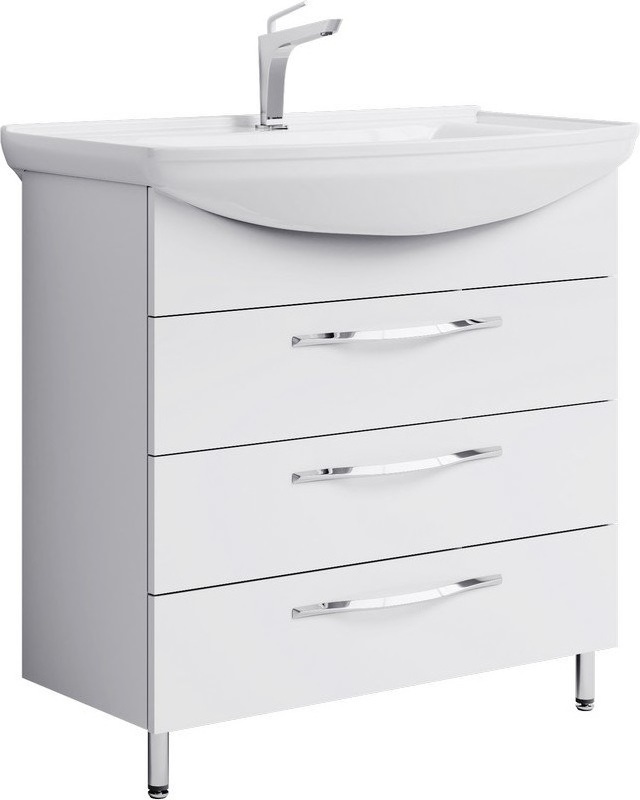 Тумба напольная Aqwella Аллегро 85 см с раковиной Стиль 85, 3 ящика, цвет белый.