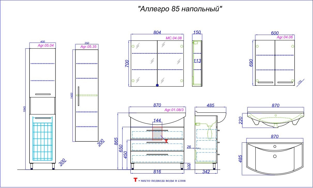 Характеристики тумба с раковиной Aqwella (Agr.01.08/3)