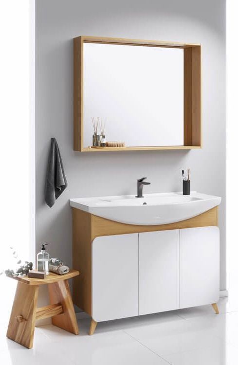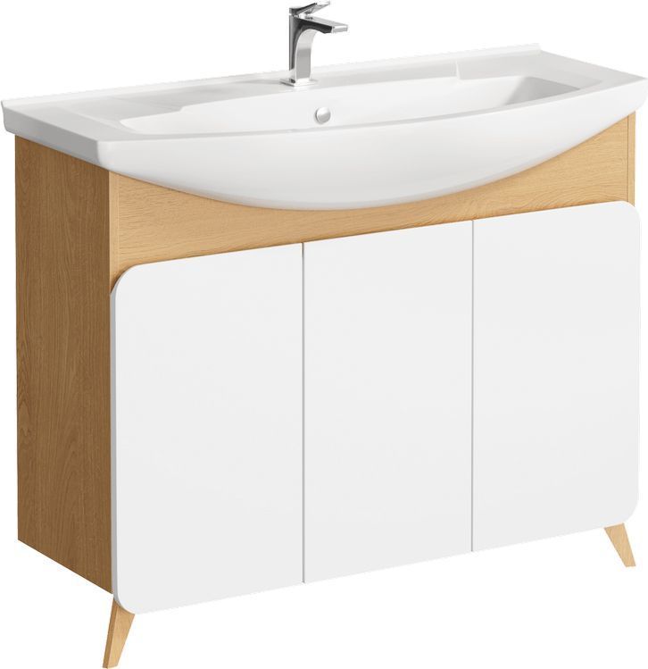 Тумба напольная Aqwella Basic 105 см с раковиной Элеганс 105 см, с тремя дверцами, цвет дуб золотой/белый.
