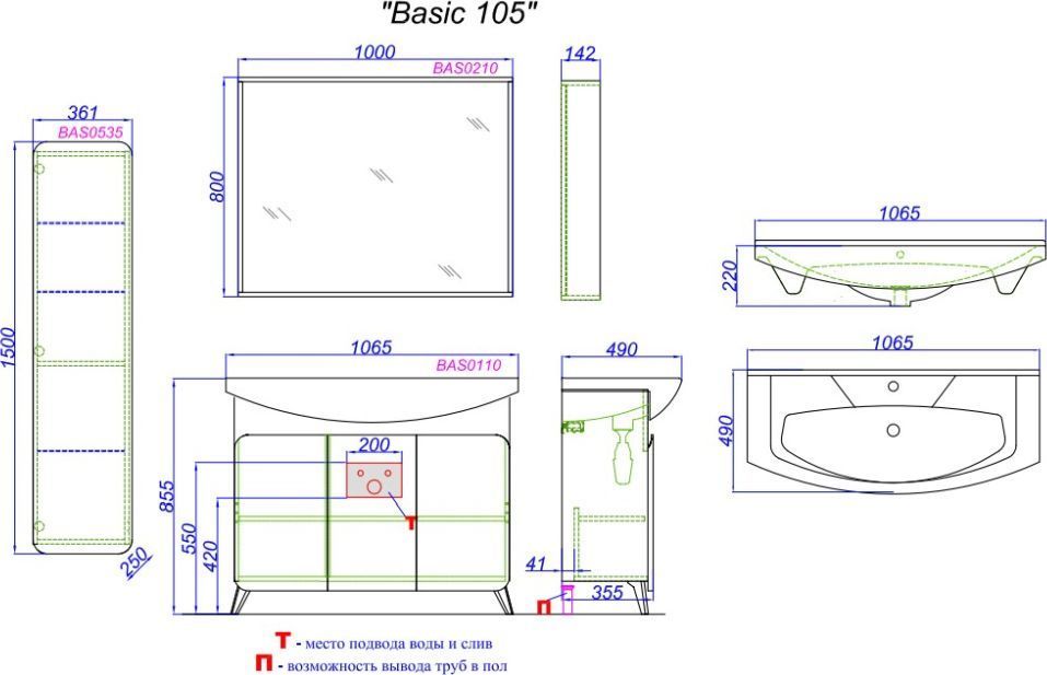 Характеристики тумба с раковиной Aqwella (BAS0110DZ)