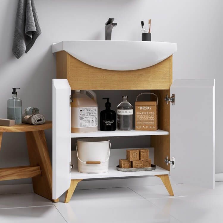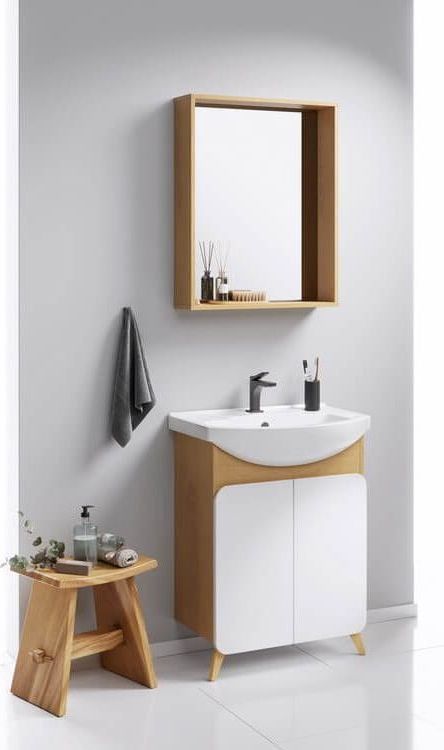 Тумба напольная Aqwella Basic 65 см с раковиной Элеганс 65 см, с двумя дверцами, цвет дуб золотой/белый.